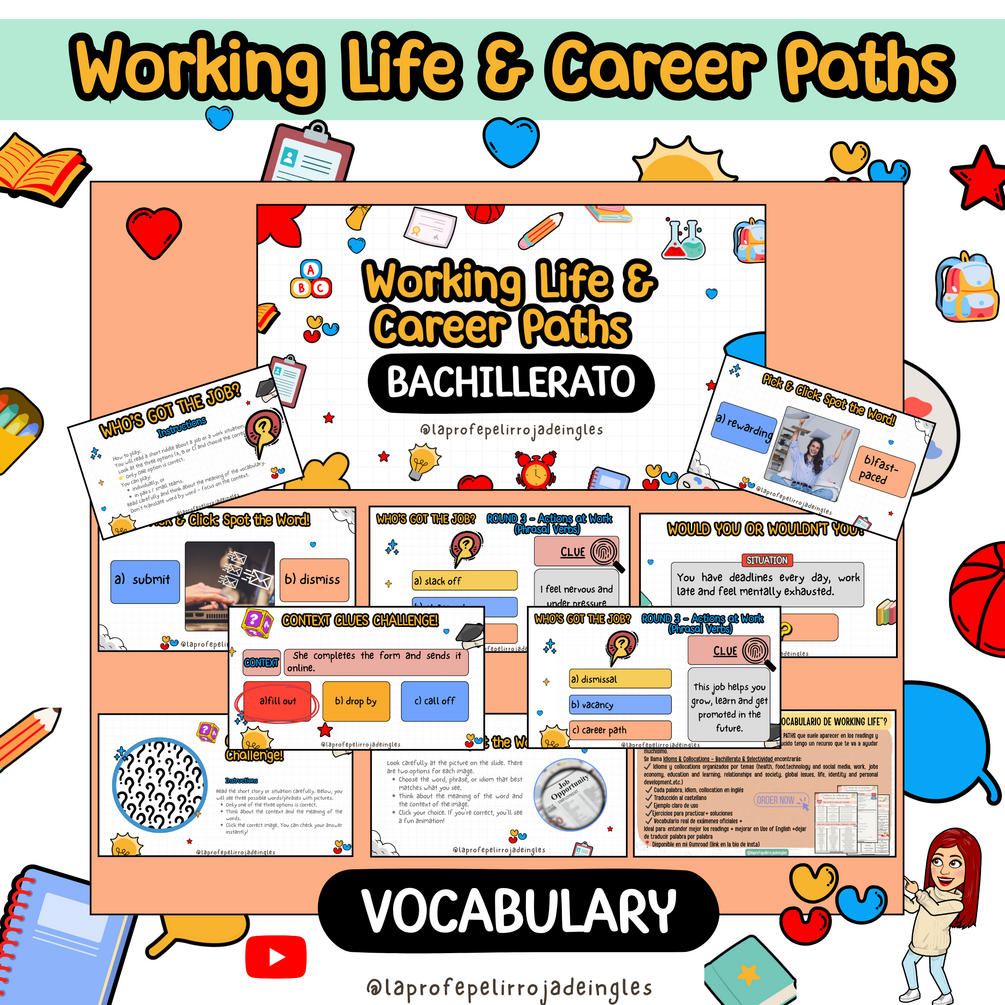 Si tus alumnos de 2º de Bachiller necesitan dominar el vocabulario B2 sobre working life & career paths sin memorizar listas eternas, este recurso es para ti 👀👇